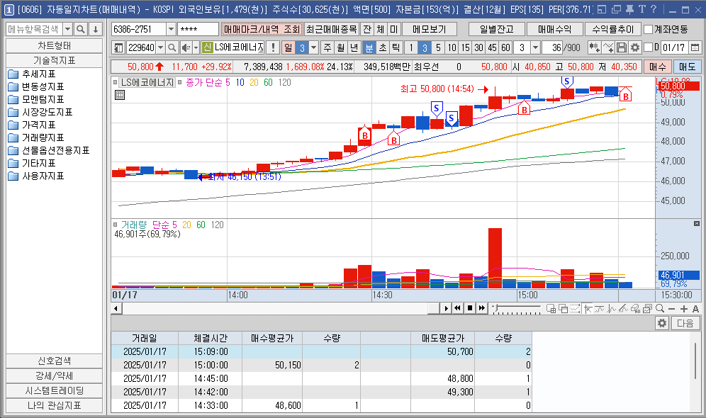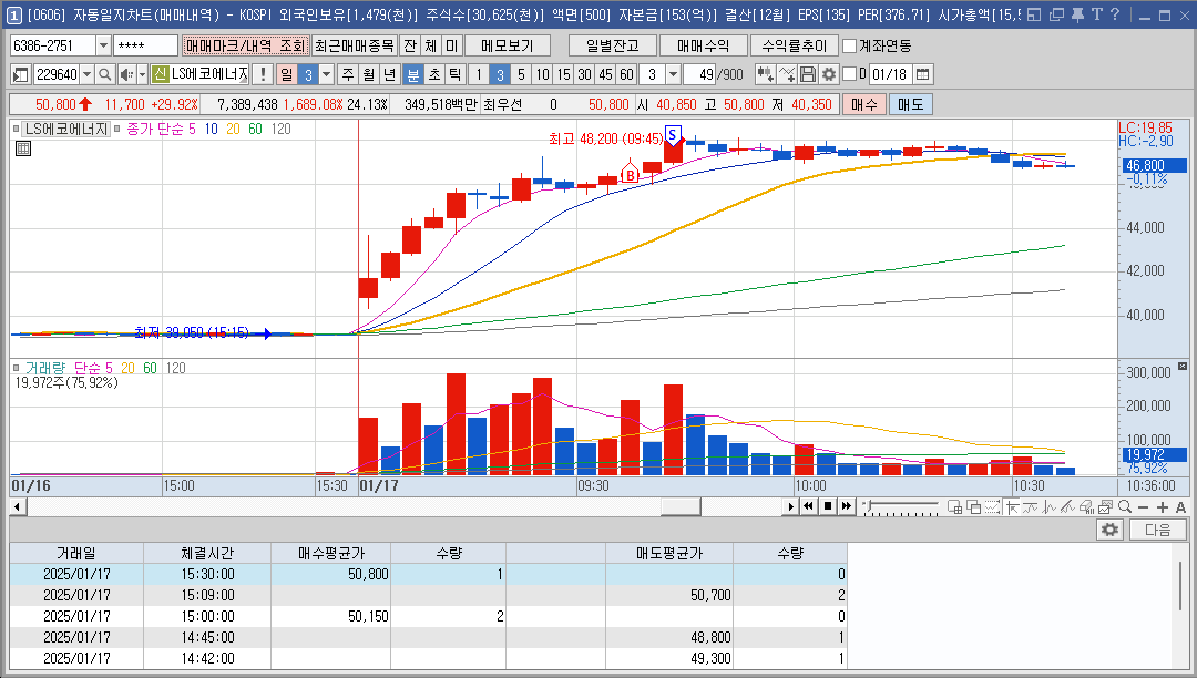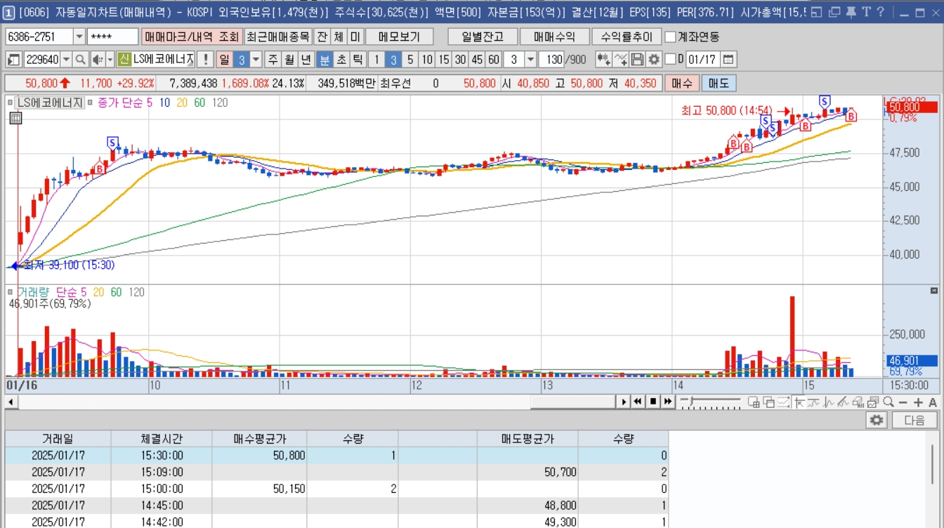 오전장 끝낸 후 빠르게 쇼핑몰 일을 마치고 나서 14:30분 오후장에 대장주인 LS에코에너지를 다시 확인을 해보았다.