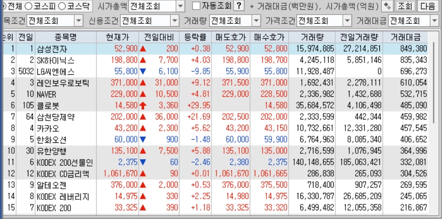 오늘의 주도 테마는 로봇주로 파악이 되었다. 장 초반에 여러 테마가 적극적으로 상승하면서 테마를 찾기가 굉장히 힘들었다. 오늘 국장이 좋았던 이유는 은 어느 때보다 나쁘지 않은 장이었다. 오늘의 테마는 로봇주로 파악이 되었고, 적극적으로 단타를 시도해 보았다.