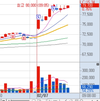 다음날 주식이 어떻게 되었는지 그다음 페이지에서 작성하겠습니다. 간단히 다음날 그래프를 보여드리면 모두 갭상승을 보여주었다.