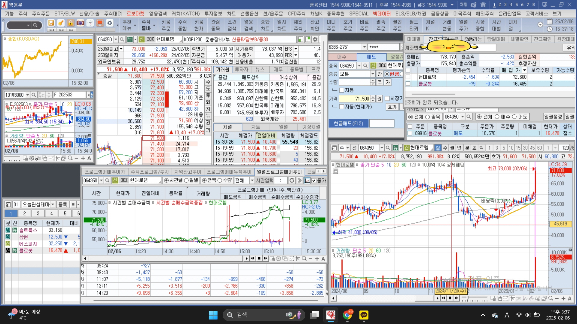 그리고 기관에서 매수세가 들어왔고, 외국인은 매도세가 세긴 했지만, 장이 마감하기 전에 프로그램매매그래프를 보면(검은색줄) 마지막에 그래프가 상승하는 걸 봐서는 외국인 매수세도 들어왔다고 판단이 되었다. 하지만 외국인 매도세가 많아서 조심하기 위해 적은 비용으로 종가배팅을 하였다. 결과는 그다음 글에서 결과를 말하겠습니다.