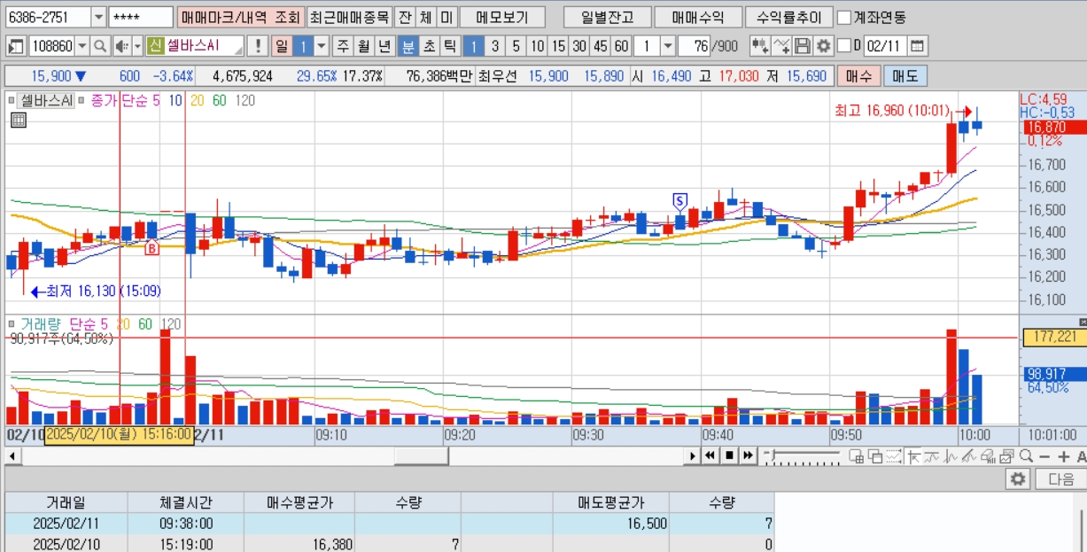 전날 셀바스 ai 종가배팅을 했는데 초반 하락이 오면서 천천히 반등하는 모습을 보여줬다. 웬만하면 오전에 다 정리하려고 했기에 반등이 오지 않아도 팔 생각이었는데 다행히 천천히 오를 때 팔면서 약간의 수익을 챙겼다. 완전 약간이다.
