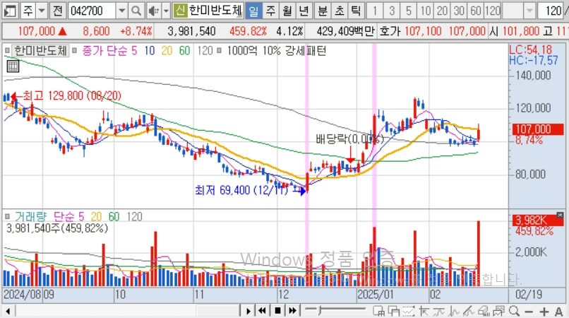 반도체 테마주(아이에스티이, 한미반도체)와 조선테마(삼성중공업)가 가장 세 보였다. 반도체 테마주에서는 아이에스티이는 신규상장주로 첫날 장대양봉을 뚫으려는 모습을 보이지만 뚫지 못했고, 한미반도체도 120일선 기준 그래프 위치가 좋지 못했다. 한미반도체는 외국인, 기관 수급이 좋긴 했지만 지켜 보리로 했다. 투자를 했다면 반도체 테마주 중에서는 대장주 한미반도체에 투자했었을 거다.