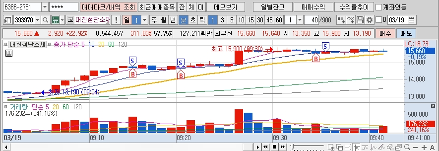 등락률도 순위 안에 들어오면서 거래대금도 10위권 안에 돌아와서 단타 하기 적합하다고 판단하여 단타를 해보았다.