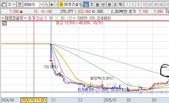 상승률 순위를 조회하다가 태영건설이라는 글을 발견했다. 태영건설우가 장 시작할 것 없이 30% 이상 상승으로 진작에 장을 끝내버린 걸 보았고, 태영건설도 거기에 맞게 상승하는 모습을 보여주었다.