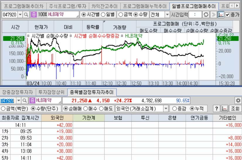 또한 HLB와 HLB제약을 비교할 때 그래프가 비슷하긴 하지만 HLB는 음봉이었고 외국인도 빠지고 있었다. 나는 대장이 HLB제약이라고 판단했다. 그리고 11월에 저점을 찍고 반등하는 모습을 보였기 때문에 충분히 상승으로 갭을 메어주지 않을까라는 생각으로 매수에 들어갔었다.