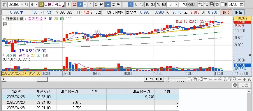 오늘도 거래대금 분위기가 좋은 차트를 찾고 투자에 나섰다.
